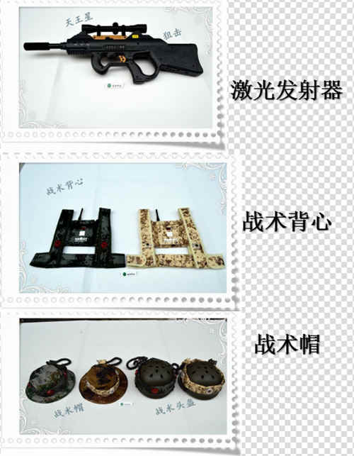 单兵装备含3样。战术背心、战术帽/盔、激光发射器(激光发射器)