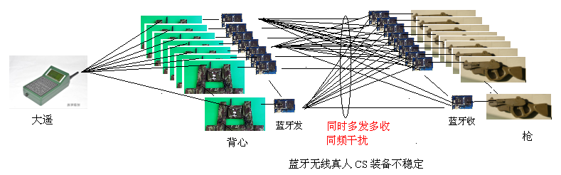 那么究竞有什么问题呢? 有线装备如果没有电话线,背心和枪之一就没电了对吗?这是第一个问题,第二个问题是背心和枪之间的数据传输被断开了,对吗?要做无线装备得把这两个题解决了对吗?